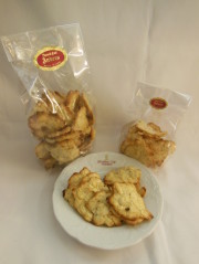 ein Mandel Eiweiß Gebäck welches in einem ganz speziellen Backvorgang seine urtypische Form erhält. Über die genauen Zutaten wird seit Jahrzehnten geschwiegen, aber eines kann man sicher über dieses kleine Gebäck sagen... mit jedem Biss wird man süchtiger davon!